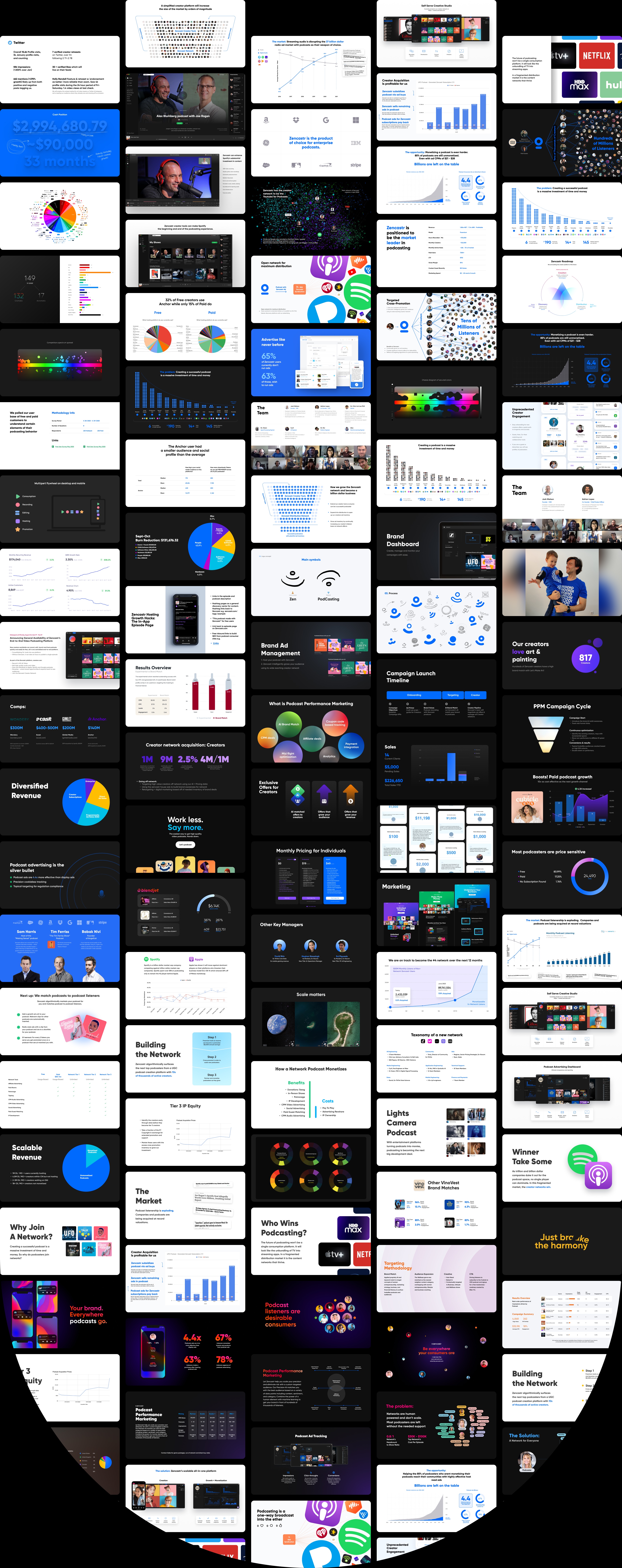 • Investors Pitches • New Features Demo • Onboarding • Tutorials • Research presentations • Board Decks