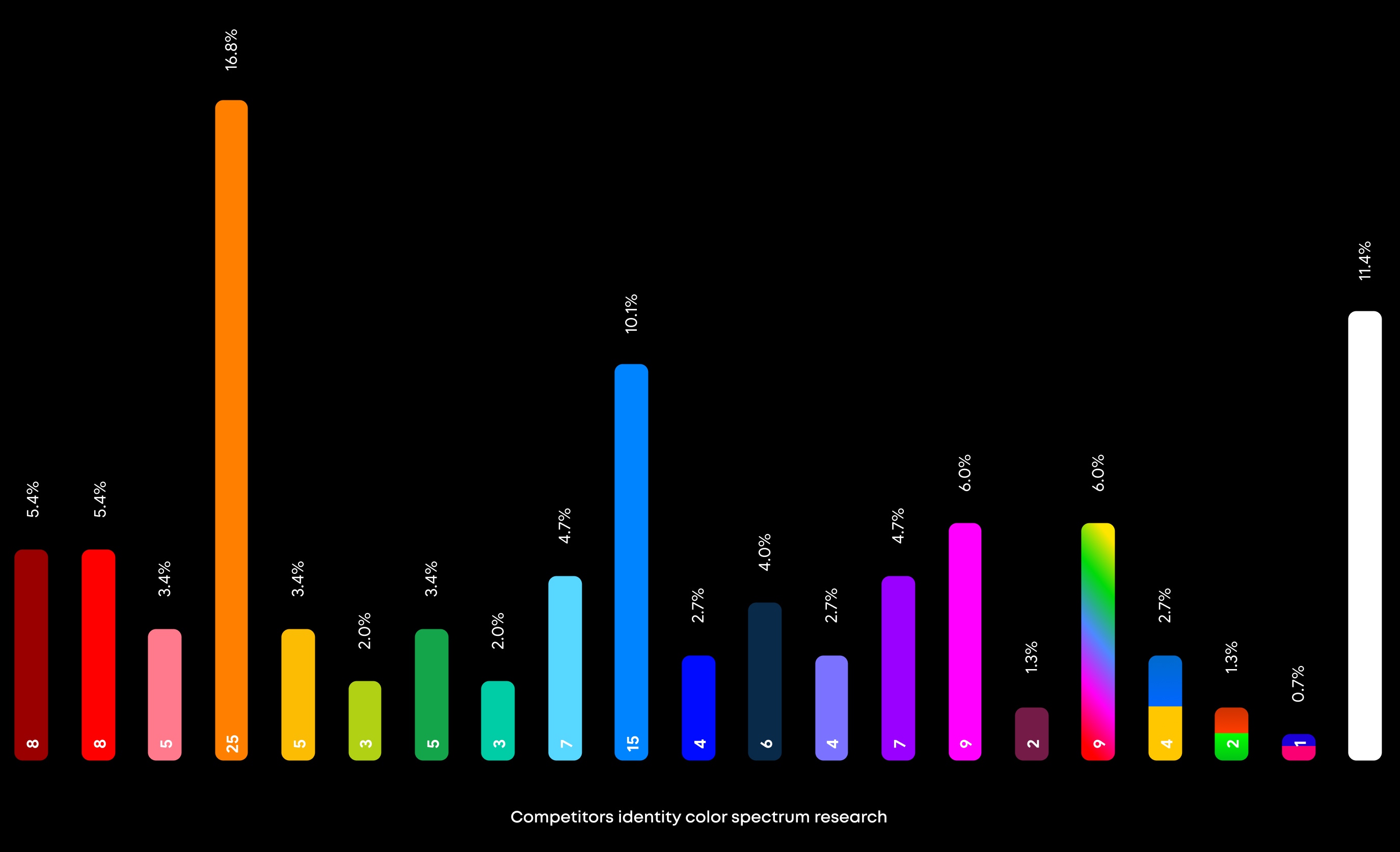 • Market Research • Competitors research • Brand vision and Positioning • Color and Semtanic research • Logotype and custom font • Visual and audio identity • Brand Guidelines • Swag and visual assets • Public execusion