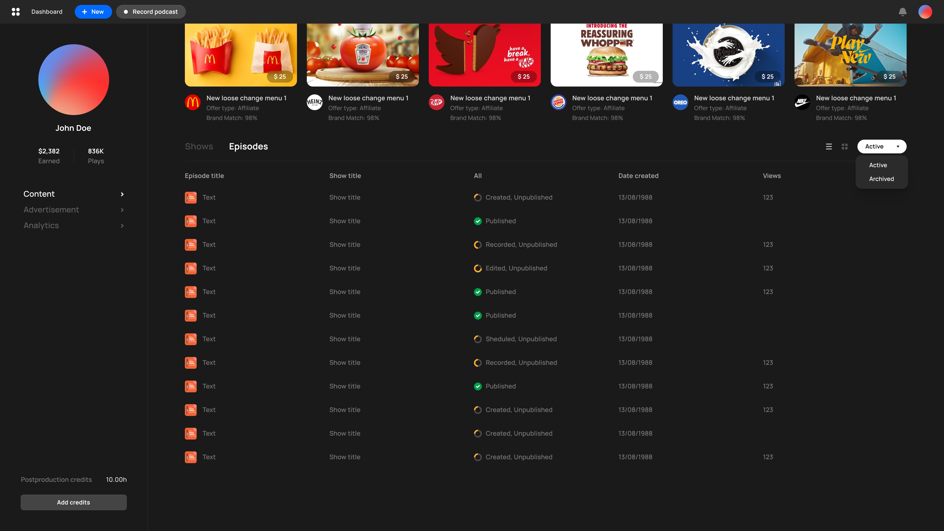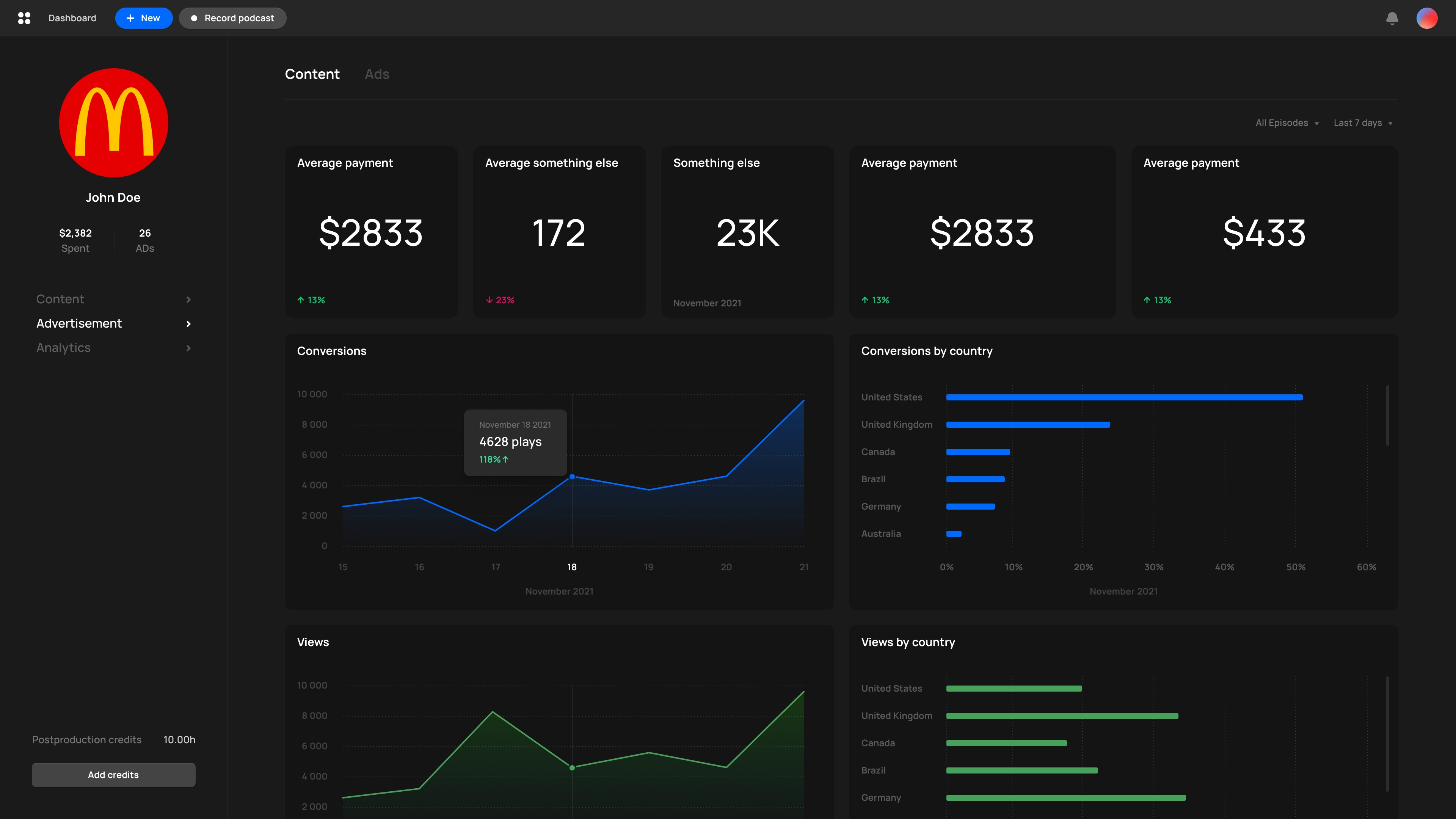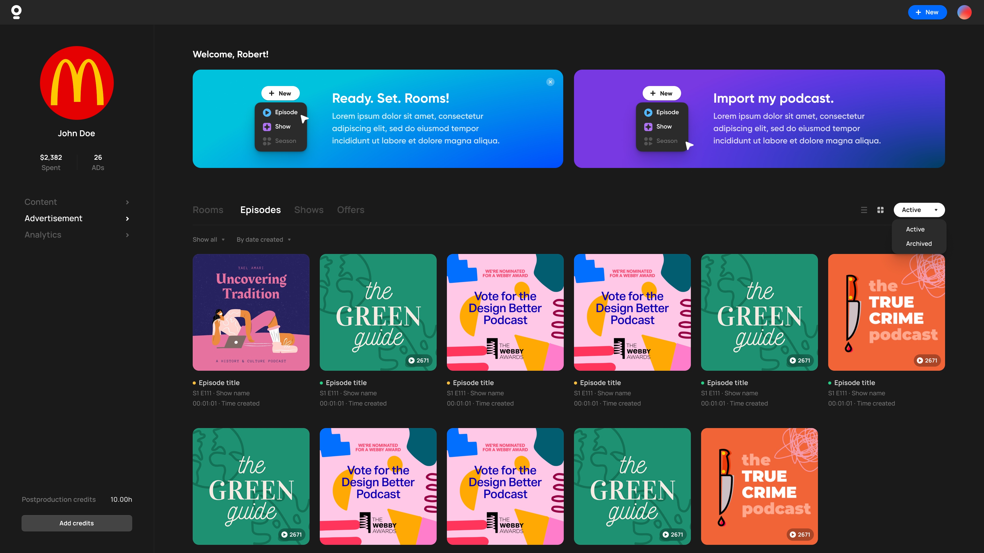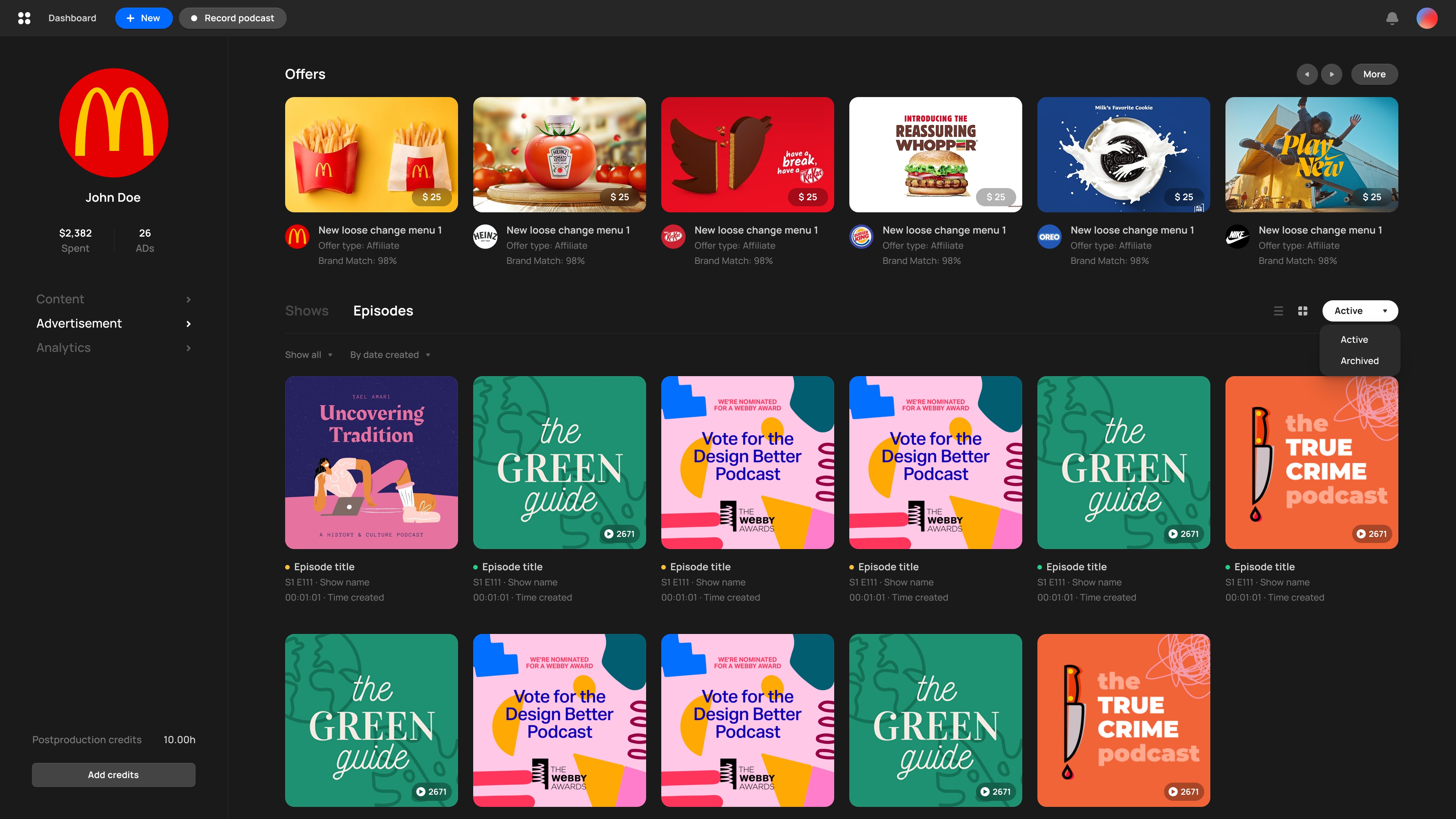 • Analytics and UX Research • User interviews and testing • Complex product redesign • Video Podcasting Tool Design